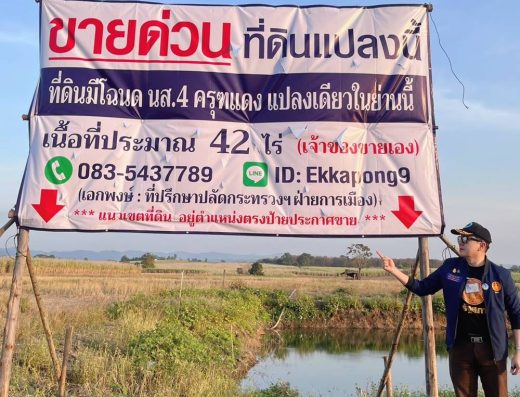 ด่วน ขายที่ดินแม่สอด-ห้วยกระโหลก จำนวน 42 ไร่ (ที่ดินมีโฉนด นส.4 ครุฑแดงแปลงเดียวในย่านนี้) โทร 083-5437789