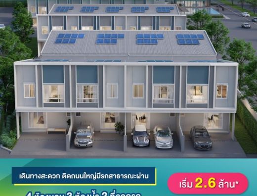 เสนา วีว่า ฉลองกรุง-ลาดกระบัง ทาวน์โฮมพร้อมอยู่ ติดถนนใหญ่ พร้อมติดตั้งโซล่าเซลล์ ใช้ไฟฟรี 25 ปี